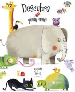 Divertido libro con animales que aperecen y desaparecen. Es como estar viendo una fila de muchos animales en fotogramas, en cada página se ve una parte del animal que se fue, el que está y la parte del animal que vendrá. Nombrarlos y adivinar cual es cada uno es lo que nos mantiene enganchados al libro.